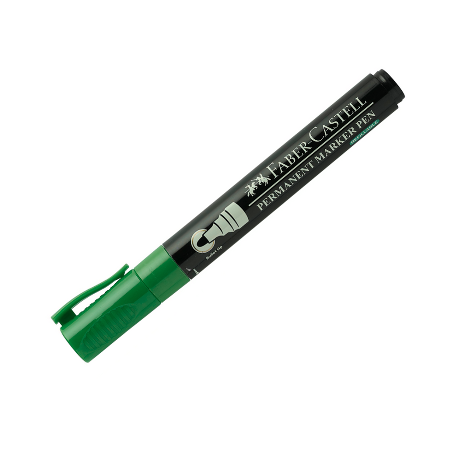 Faber-Castell Permanent Marker - Bullet Point Green Box of 12 - A553963