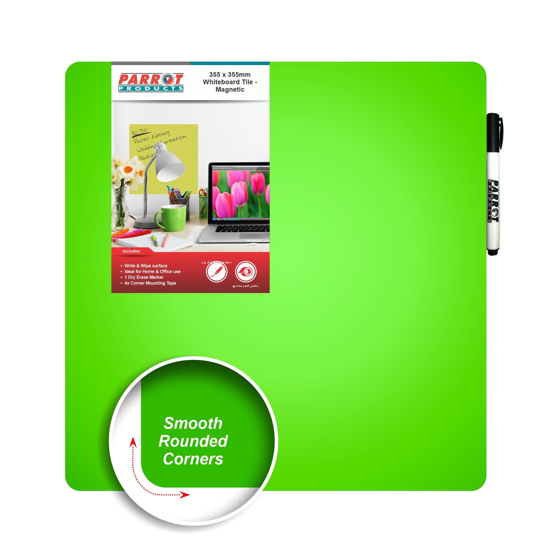 - The magnetic 355*355mm tile board can be erased.